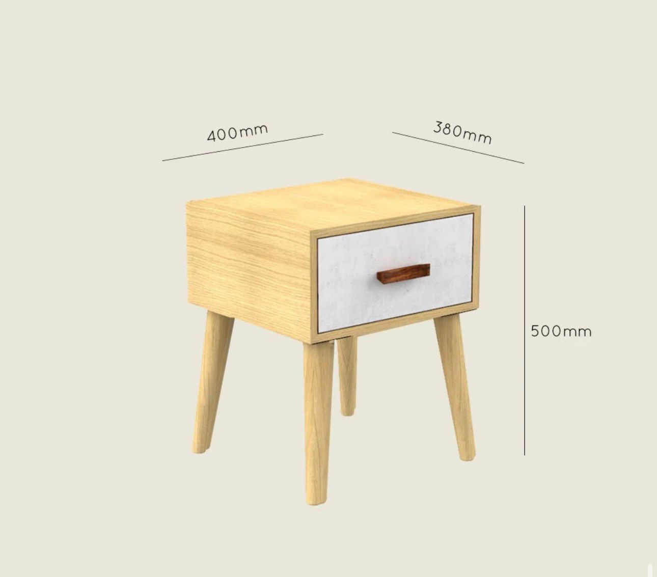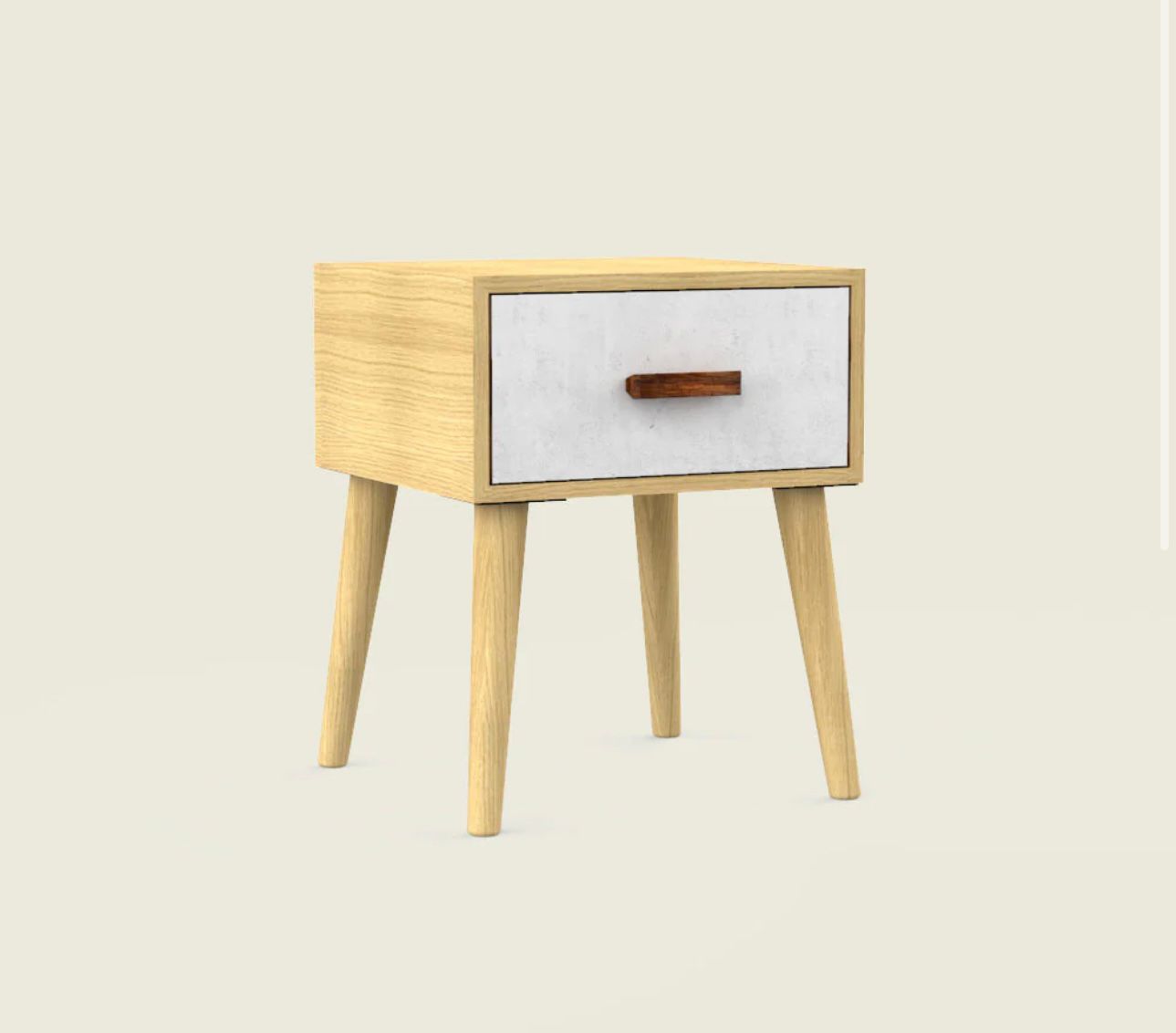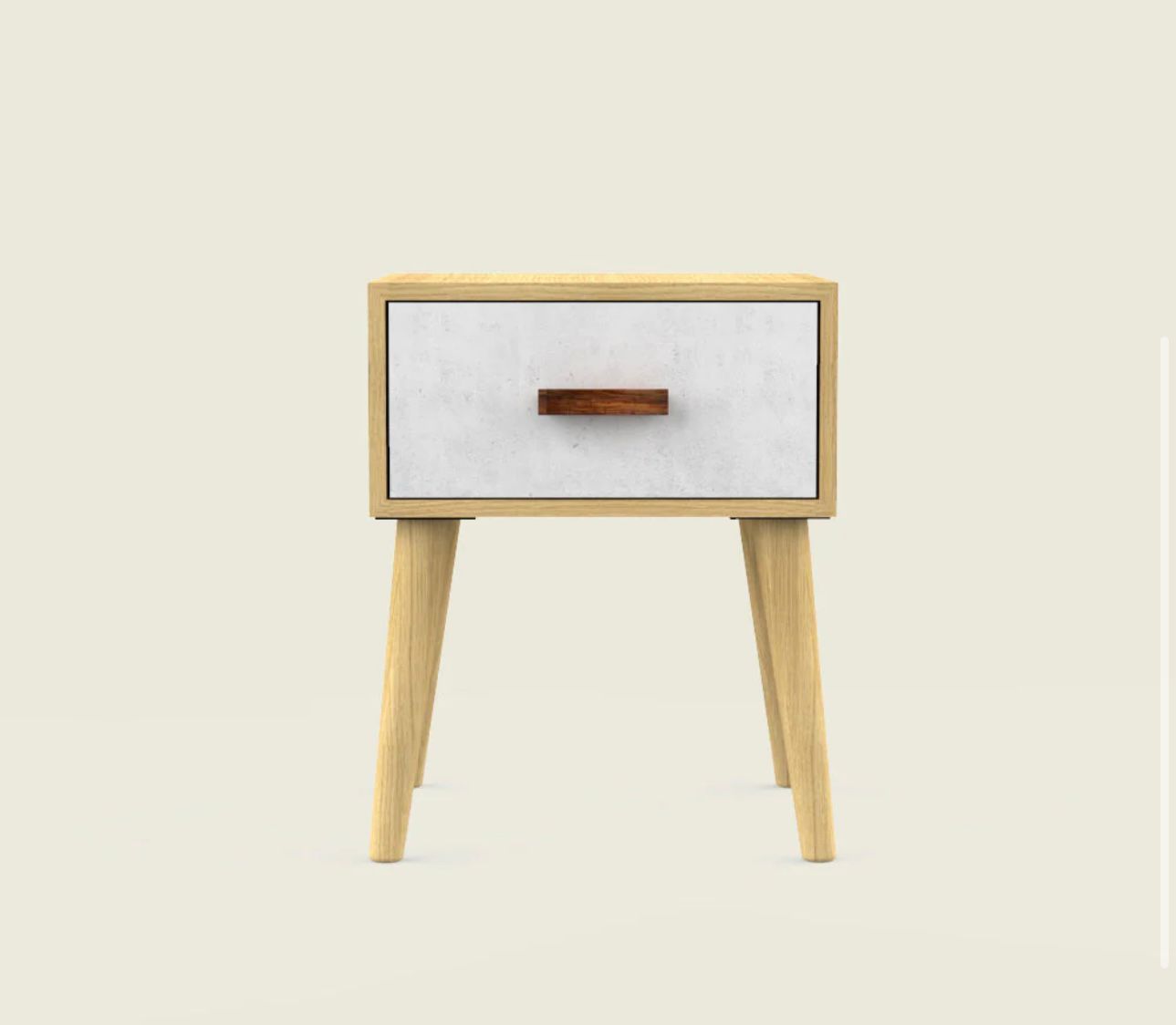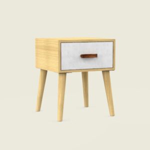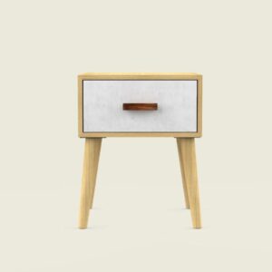 This handcrafted bedside table showcases a simple yet elegant Nordic design. Ideal for the bedroom or living room, it features a stone-inspired print on the drawer front, adding a touch of sophistication to any space.